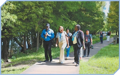 中外媒体嘉宾到云南大理白族自治州洱海生态廊道参观采访。 |
